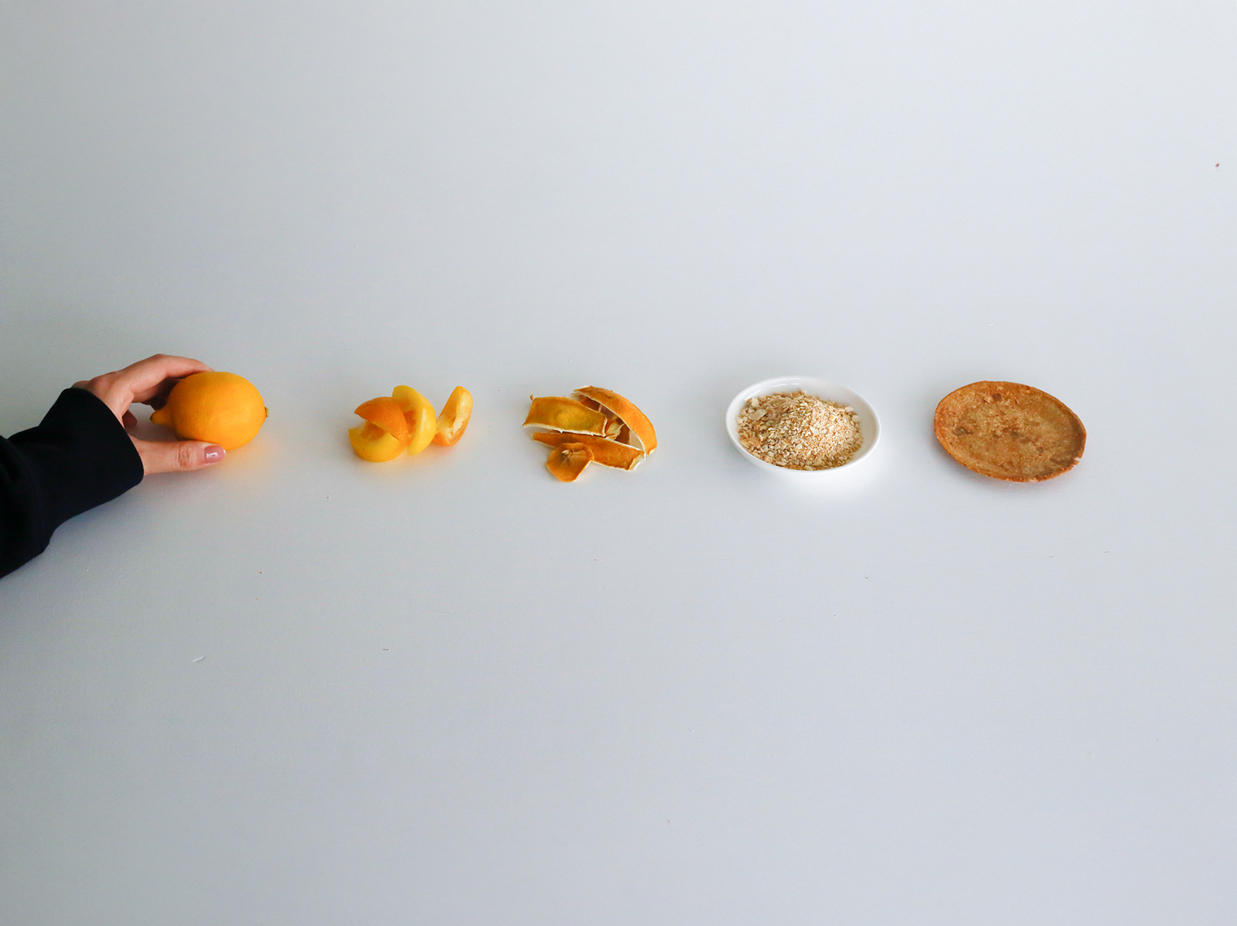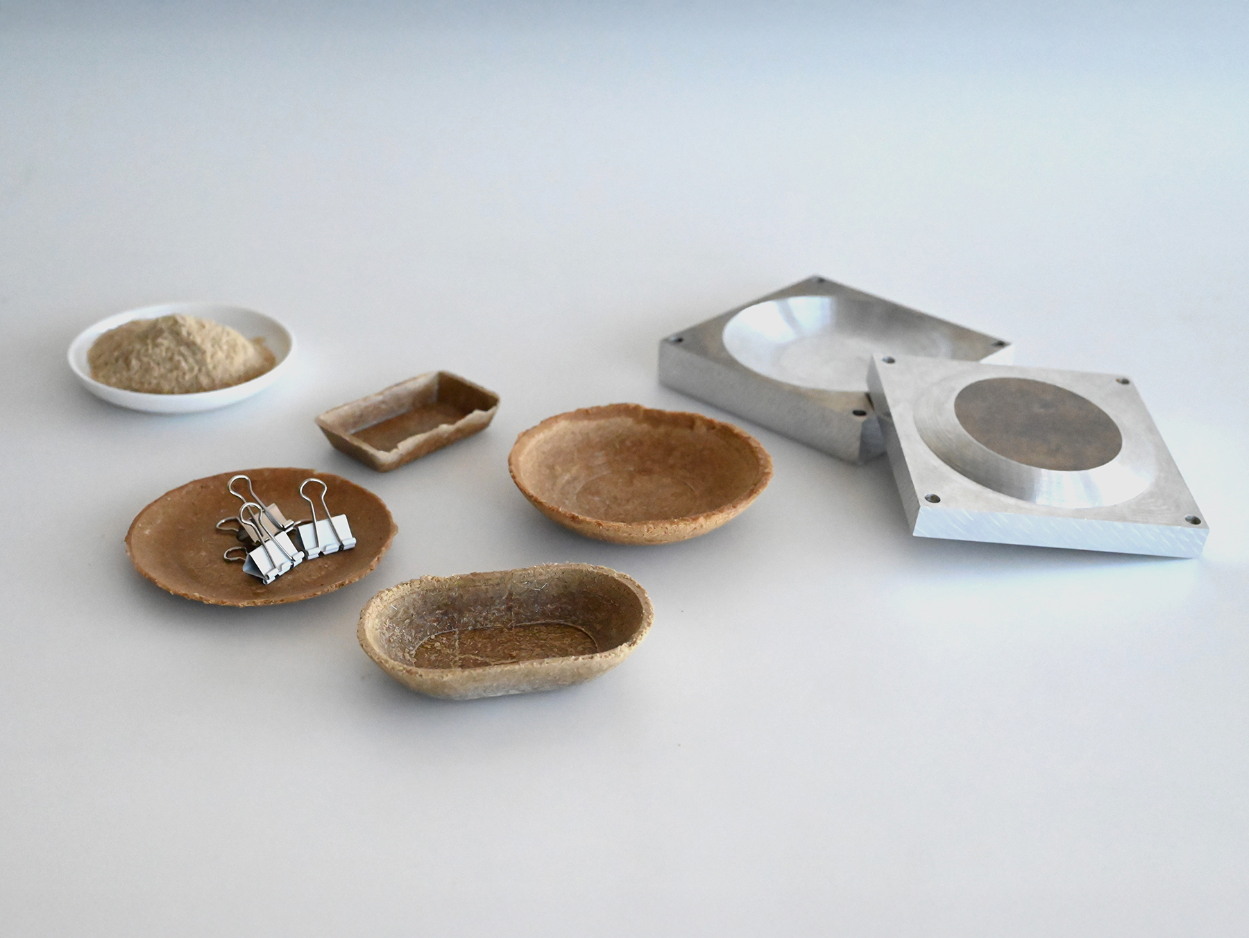 農産物には規格が設けられており、規格に合わないものの多くは廃棄処分され、飲食店でも調理工程で発生する廃棄物の食品ロスが発生している。そこで本研究では廃棄食材を乾燥させ粉砕し、用途に合った金型で熱プレスを行い小物入れを制作した。コーティングを蜜蝋にしたことで耐水性および強度を高めることができた。