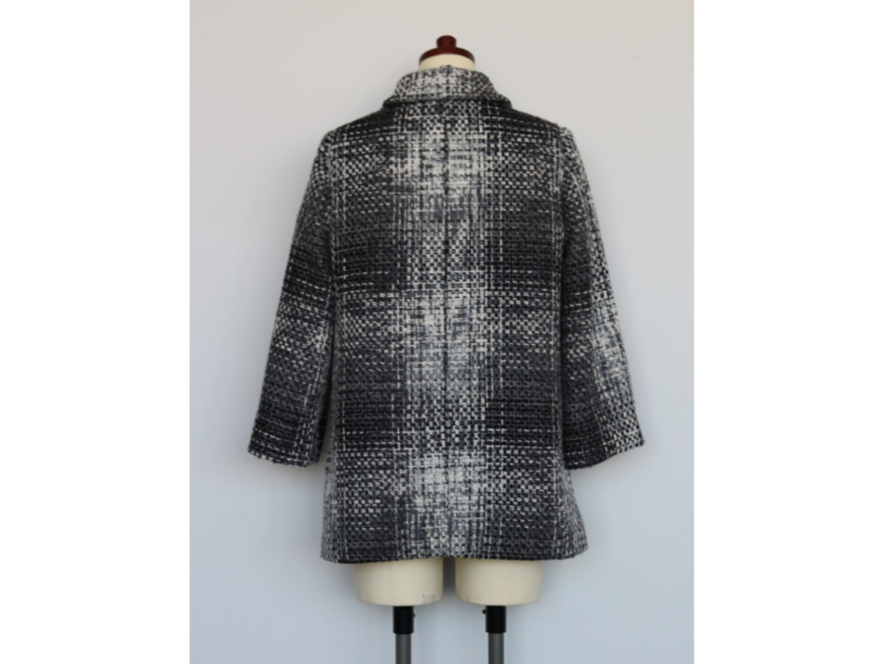 ファンシーツイードとは装飾効果を付加させた意匠糸で織られた生地であり、カジュアルからフォーマルまで幅広く活用できる。また、尾州とは愛知県一宮市を中心とした尾張西部から岐阜県西濃エリアのことを指し、毛織物の産地として知られている。大学の講義で尾州に触れる機会があり、技術力の高さに驚き興味を持ち卒業研究で使いたいと考えた。今回は、尾州産地のファンシーツイードを用いて試料布による布の力学特性の実験を行い、結果をもとに冬用コートを制作した。