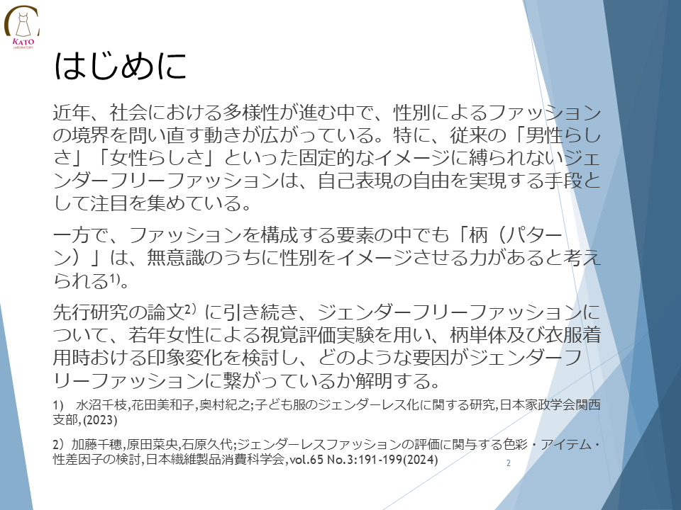 ジェンダーフリーファッションの評価に関与する柄の検討