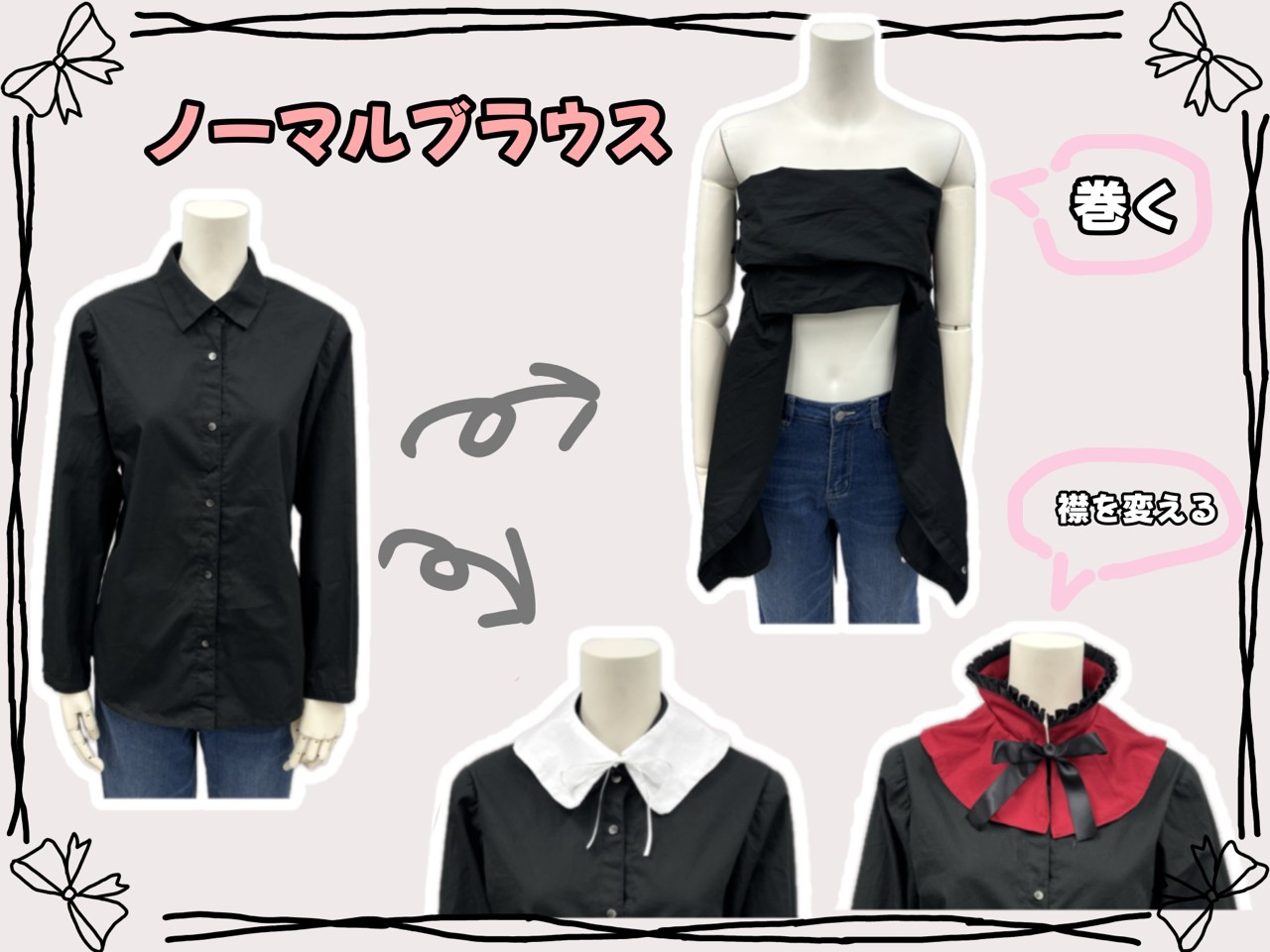 女子大学生の着用実態と衣服の廃棄要因に着目し、着まわしのしやすさとサステナビリティの両立を目指した多機能衣服について検討した。アンケート調査から、服の処分理由には劣化だけでなく、デザインへの飽きや着まわしにくさが影響していることが分かった。そこで、袖や身頃の一部を交換できるといった多機能ブラウスを制作し、試作によってパーツの組み合わせによって印象や着用の幅が広がることが分かった。本作品を通して、日常の中で無理なくサステナブルファッションを意識することにつながると考える。