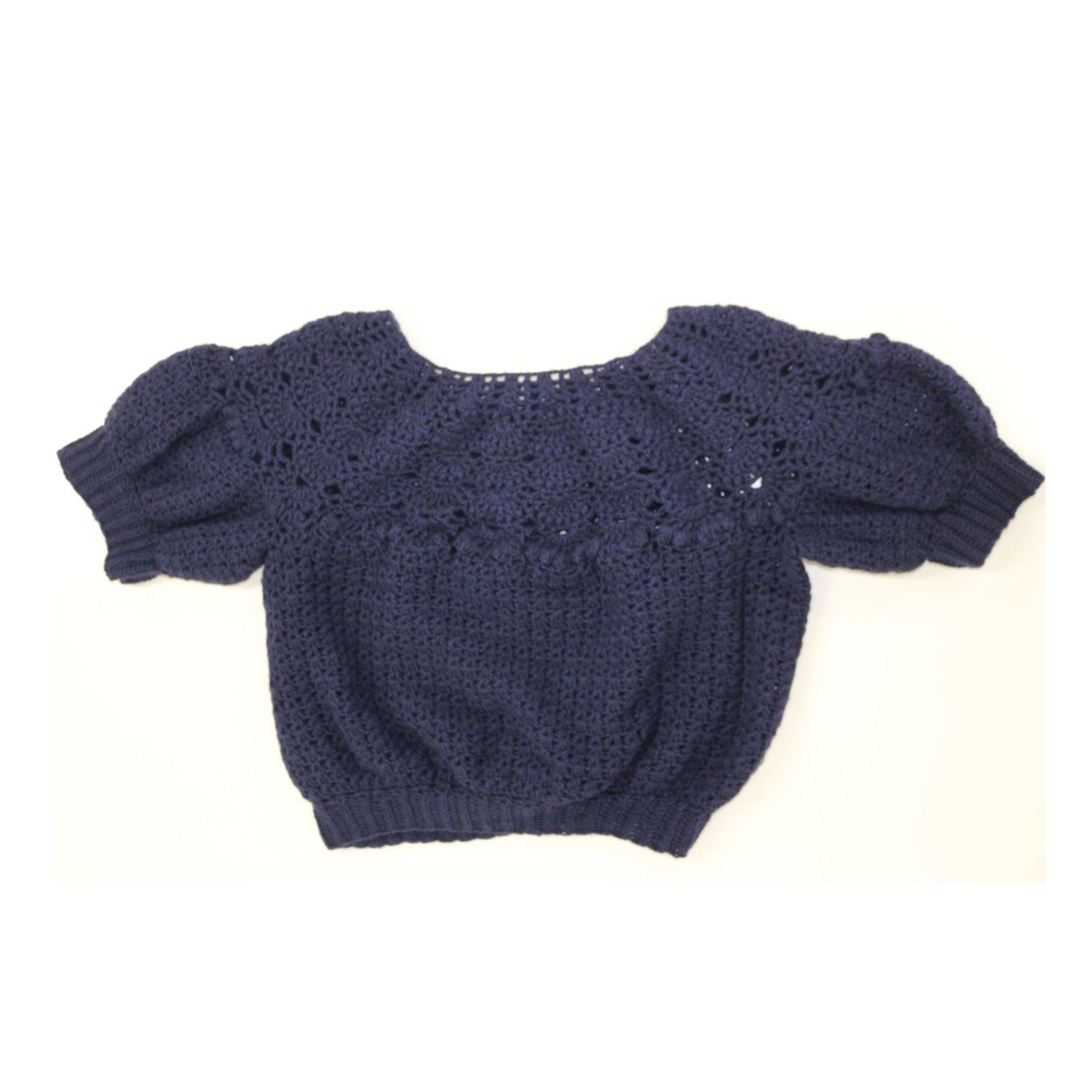 春用のニットセーターをかぎ針編みで制作することを目的とし、春の暖かい気候に適した編み模様の選定を行った。通気性試験機および圧縮試験機を用いて複数の編み模様を比較した結果、通気性および圧縮性が共に中間的な特性を示したリブ編みと細編みが適している事が分かった。これらの編み模様を用いてニットセーターの制作を行った。