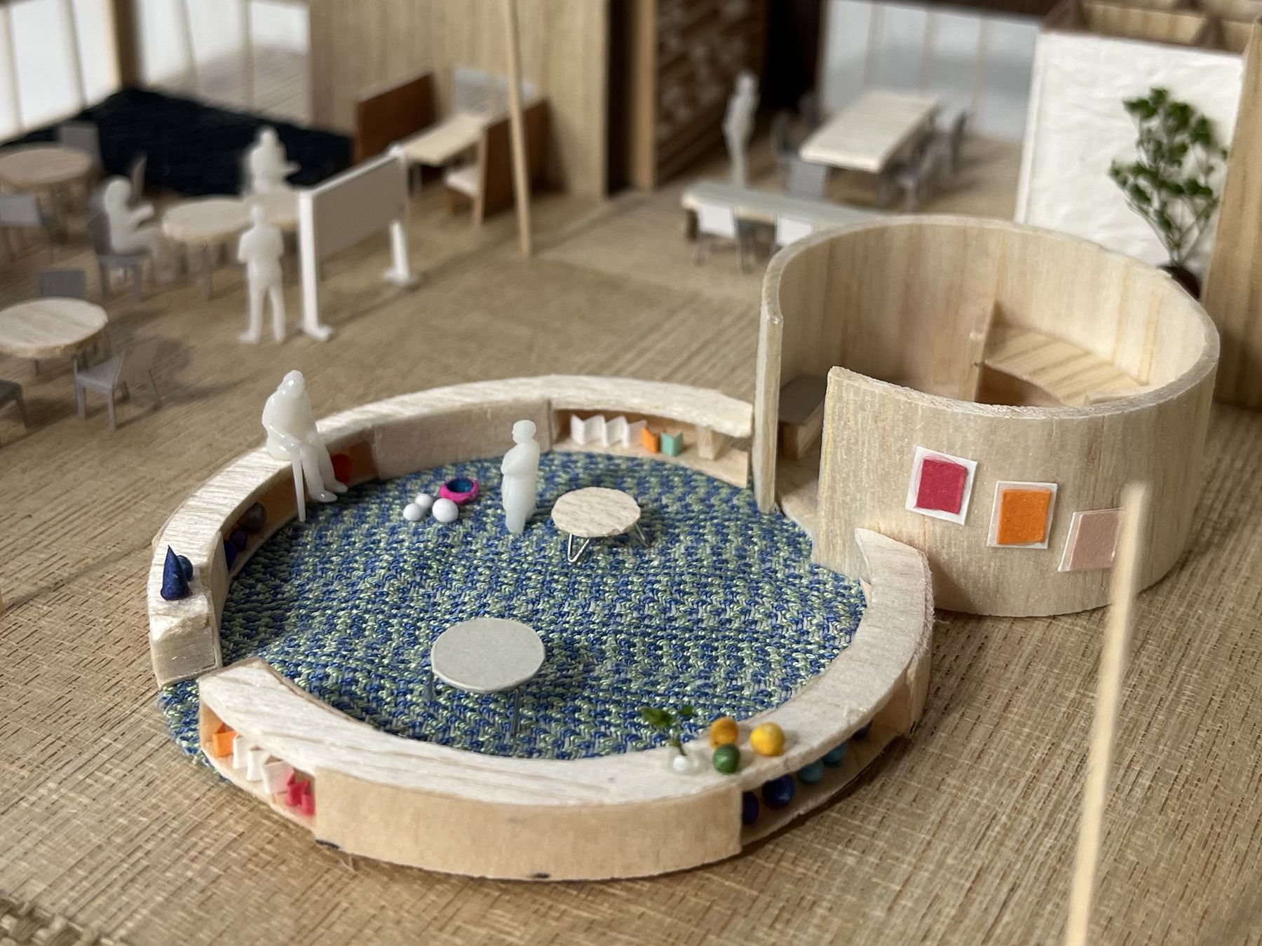 日常の中にある小さな交流が、もしもの時にも人を動かす力になると考えました。 高齢者が暮らす生活の場に、子どもや親、地域住民が特別な目的がなくてもふらっと立ち寄れる余白を重ね、声や気配を通して自然に居合わせる関係を育みます。 普段の居心地の良さが、大雨や停電など、避難勧告が出る前の少し心配なときにも足が向く安心感につながるよう日常と非日常がゆるやかに溶け合う空間を計画しました。避難するための施設ではなく、安心しに来る場所としての建築を目指しています。