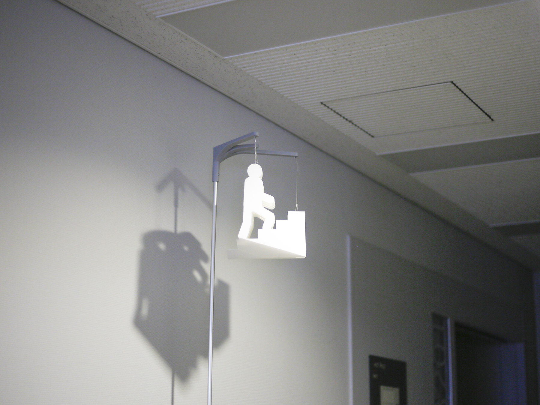 視点や角度による見え方の変化から、立体文字に着目した。立体文字に用いる水平面及び垂直面上の角度を90度以外に変化させ、多様な場面における立体サインへの応用を目指した。水平角度のみを変化させた屋外サインと、水平角度と垂直角度の両方を変化させた吊り型サイン・階段サインの3つの設置場面からそれぞれの見え方の検証を行った。