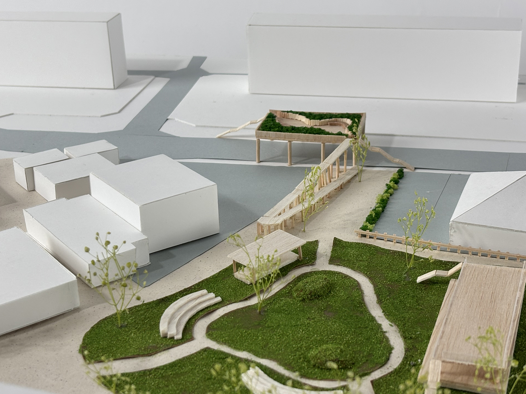 団地内の「滞留」と「通過」の行動に着目し、自然な交流が生まれる空間を提案する。高齢化と単身帯の増加が進むUR団地には、緑地や商店街の空き店舗など、本来は関わりを育む可能性をもつ空間が点在している。本計画では、それらの空間の可能性に着目し、通過の中に滞留が生まれる場へと再編する。
