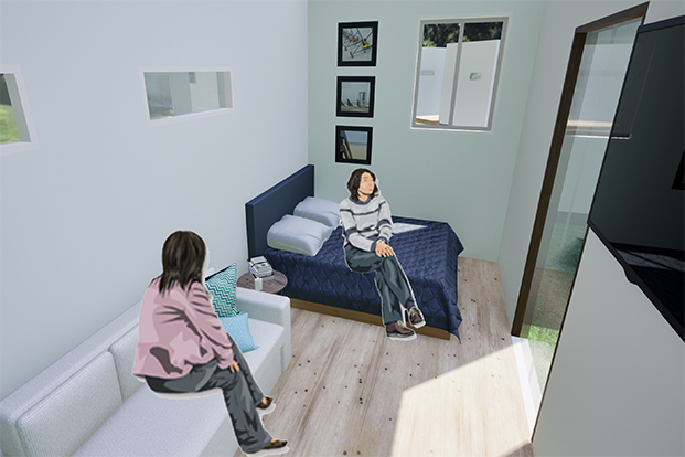 本設計は、災害発生後設置される応急仮設住宅に、トレーラーハウスを活用して被災者の快適な暮らしを提案する。トレーラーハウスは、指定避難所で集団生活によるプライバシーの問題などに対して、個人の空間が確保された住居を迅速に届けることができる。また、仮設住宅は既存のコミュニティを無視した入居もトレーラーハウスは自由な場所に設置可能であることから、コミュニティの維持ができる。さらに、家族構成に対応できるユニットトレーラーにより、避難生活の満足度を高めることを目的とする。