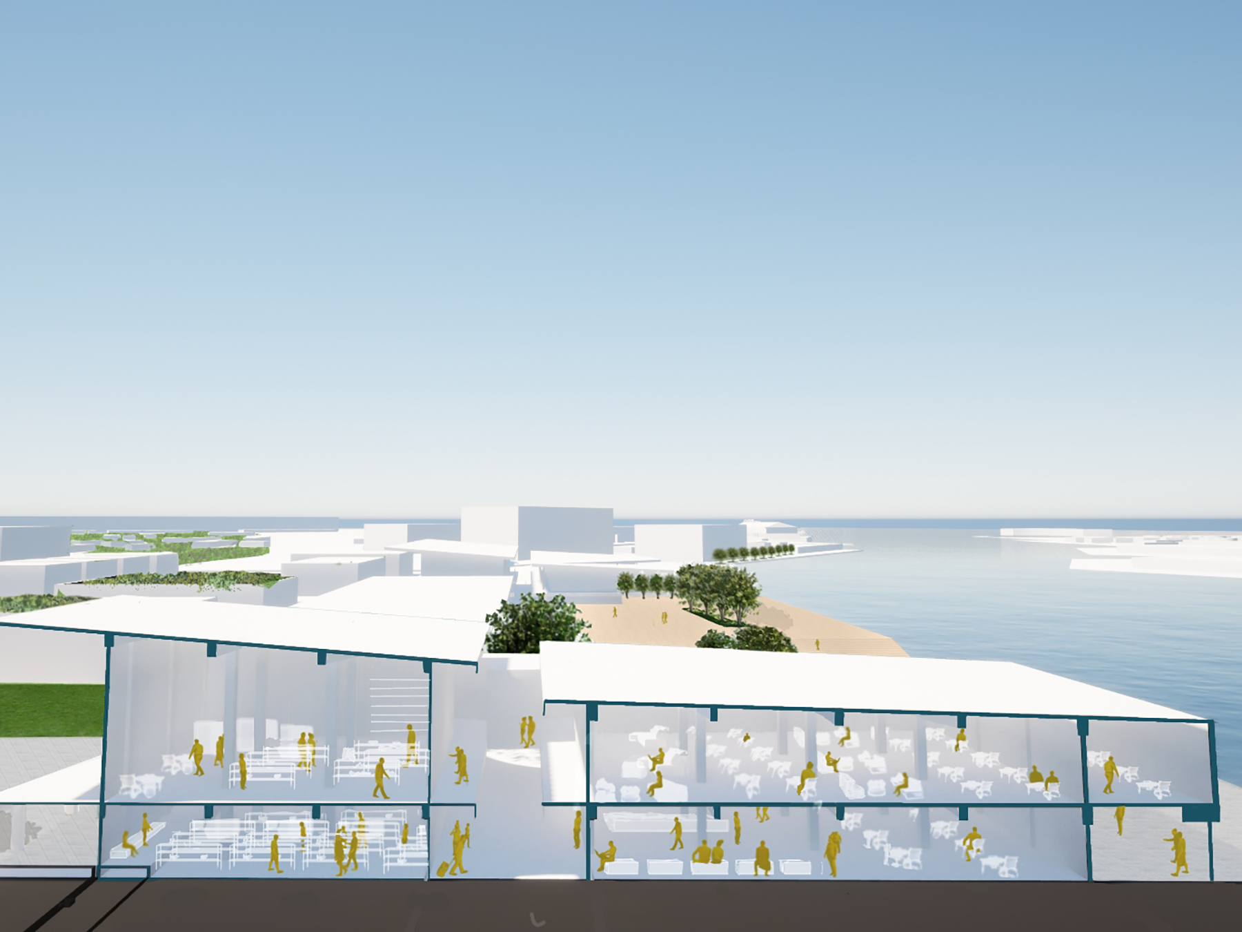 本研究は、台風等の強風や暑さにより緑化維持が困難な「暑熱強風エリア」を対象としている。付加的な設備に頼らず、建物形状の工夫によって風速を低減させ、植物の折損や枯死を防ぐ設計手法の構築を目的とする。沖縄県那覇市の那覇港湾施設を対象敷地とし、CFD解析を用いて緑が根付きやすい静穏域を特定し、設計に展開する。