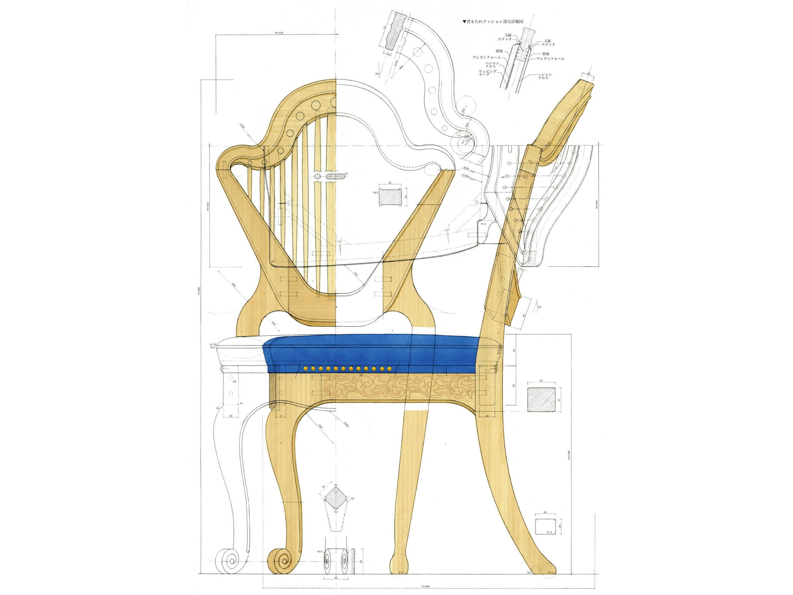 歴史的名作家具は、現在も価値を保ちながら受け継がれている一方で、その背景となる空間やインテリアは十分に継承されていない。本研究では、歴史的名作品の造形要素を抽出・再構築するデザインプロセスを提示し、それぞれの名作品に調和したインテリアエレメントを設計する。さらに、現在のインテリア工法を用いることで、技術の伝承につなげる事を目的とする。