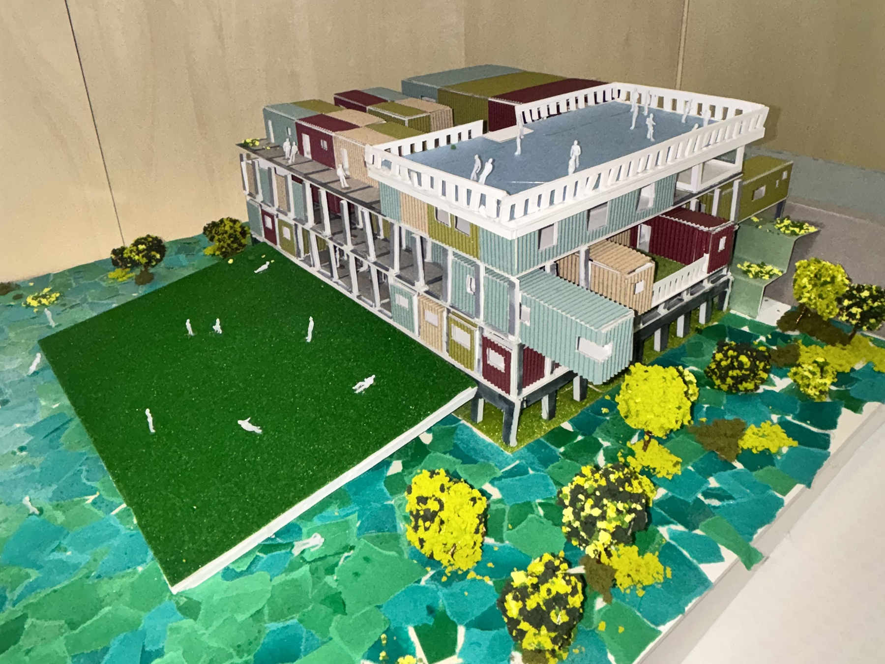 本研究では、愛知県海部郡飛島村にフェーズフリー建築の設計を行った。飛島村は平均海抜がマイナス1.5Mであり、水害が起これば大きな被害が想定される。そこで「防災」に常に意識を、「備える」ことを日頃から自然とできるような建築を設計した。飛島村の要素を多く詰め込み、一目見て飛島村の建築だと分かるようにした点がポイント。