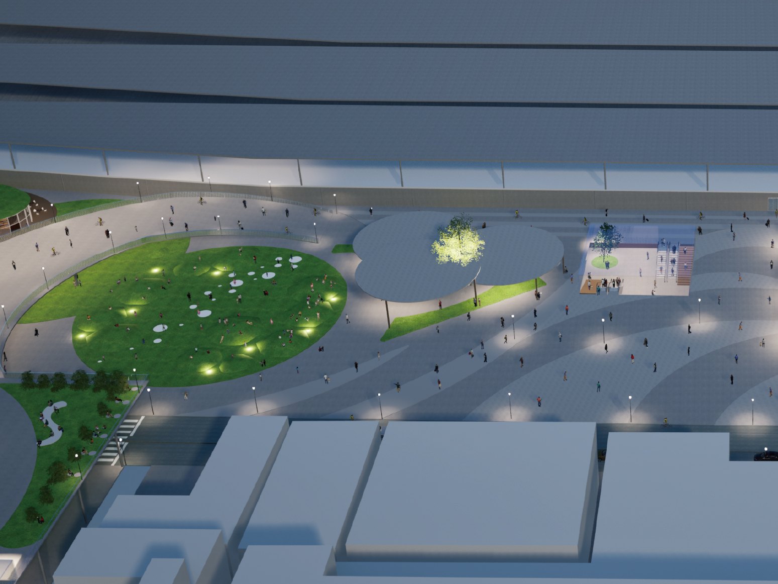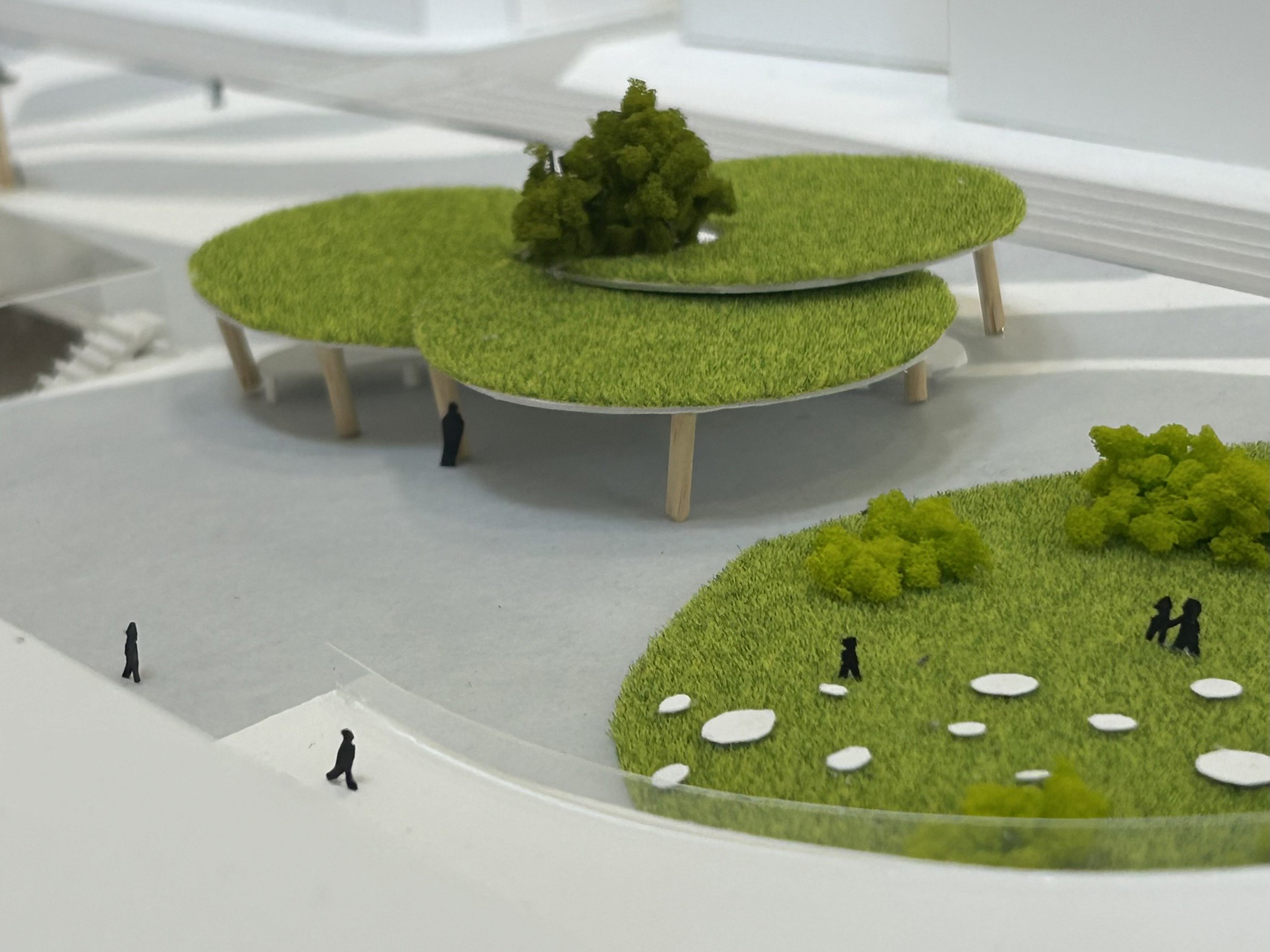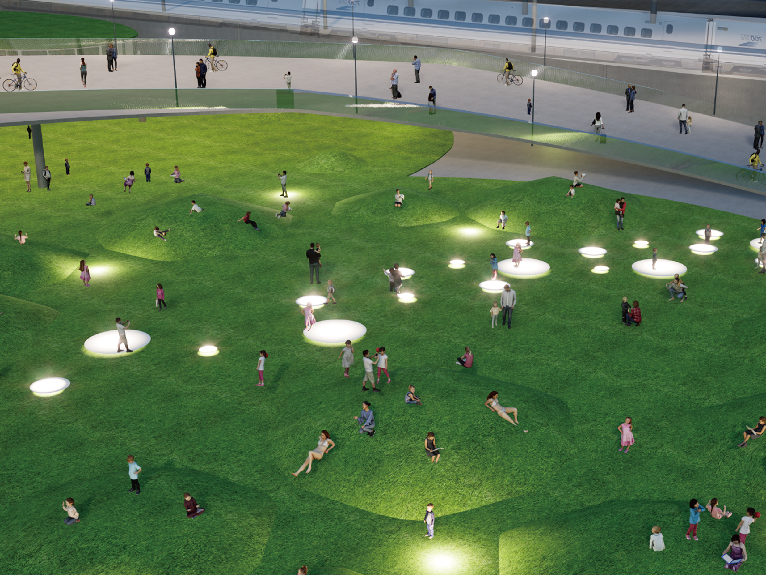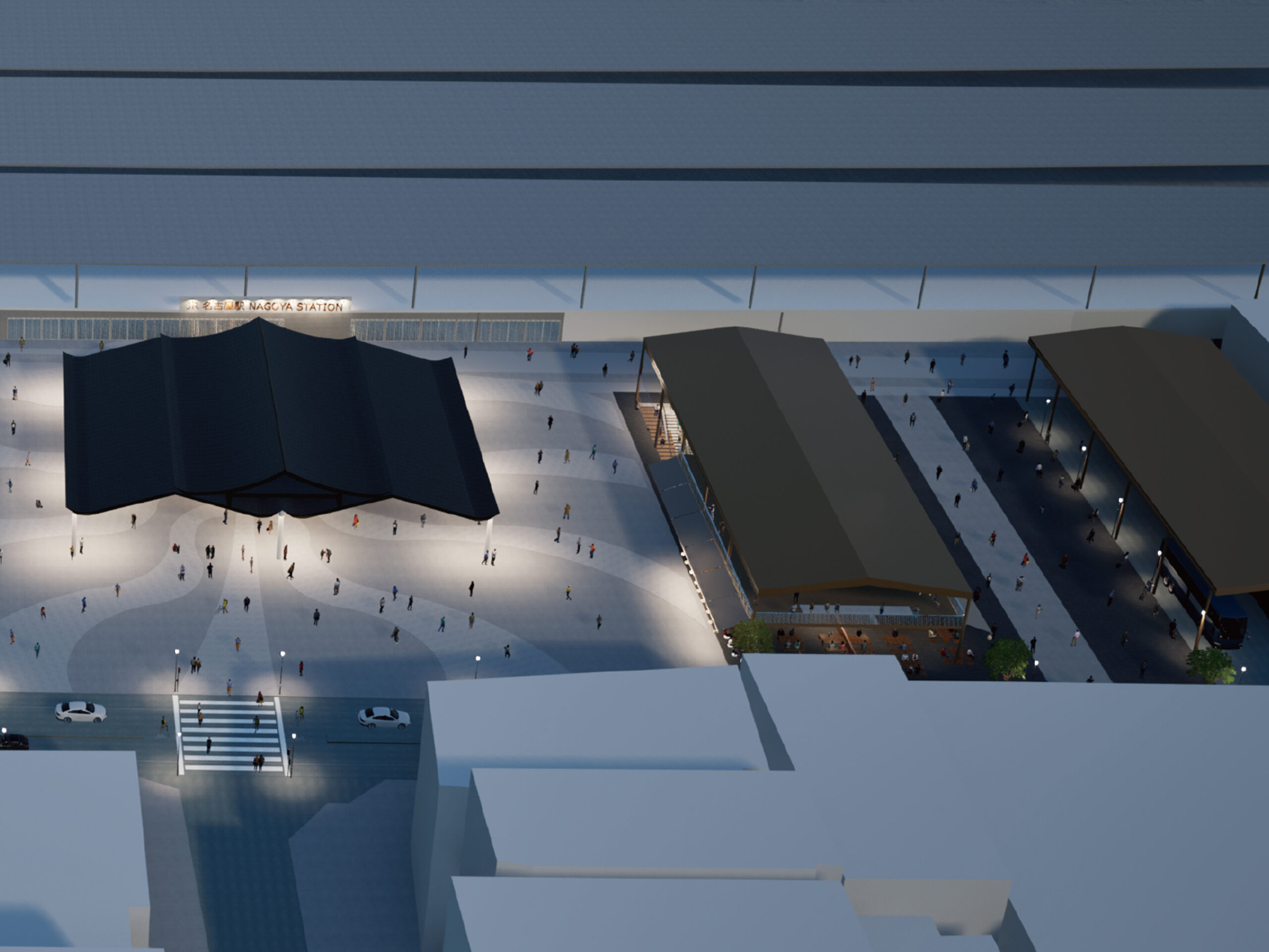 画一化が進むターミナル駅に対し、名古屋駅らしさを感じられる駅前広場を提案する。界隈性が名古屋駅西側を敷地とし、地域に息づく日常の雰囲気を大切にしながら来訪者とし自然に交差する空間を計画。歴史を感じさせる素材や意匠、リニア上部に広がる新たな緑を重ね、過去、現在、未来をつなぐ時空軸を辿る駅前を目指す。
